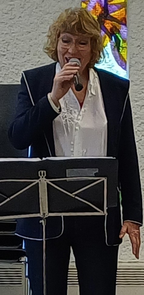 Ellen Tuytel verzorgt een lied. De vrijwilligers Anneke van Eck, Elly Sprong (diaconie), Cobi Louissen (contactpersoon Sweelinckhof) komen bij toerbeurt helpen.